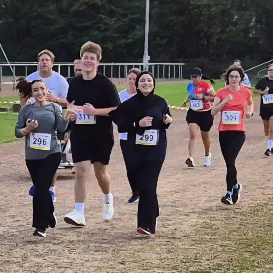 Mit großer Begeisterung gingen zwanzig Schüler*innen der Oberstufe an den Start. Ob laufend, joggend oder gehend – alle hatten das gleiche Ziel: Spaß an der Bewegung und das gemeinsame Erleben. Ein besonderer Dank gilt dabei Frau Pampel, die bei der Nummernvergabe geholfen und alle Läufer*innen tatkräftig unterstützt hat.