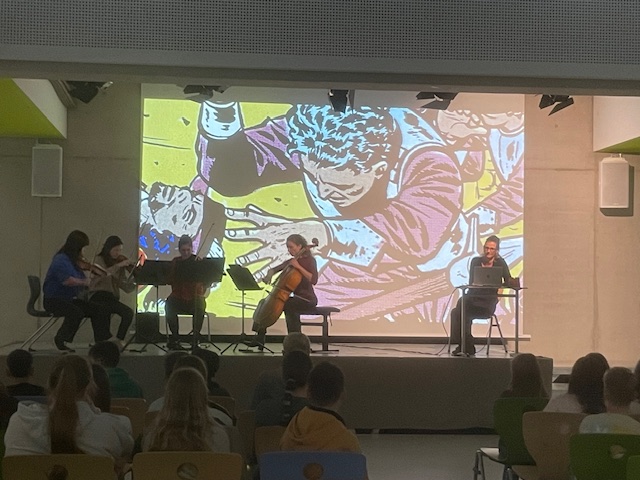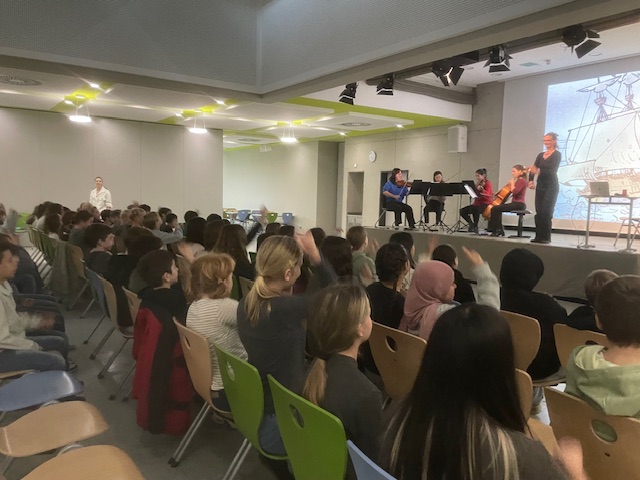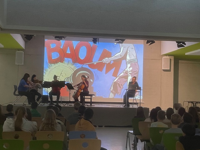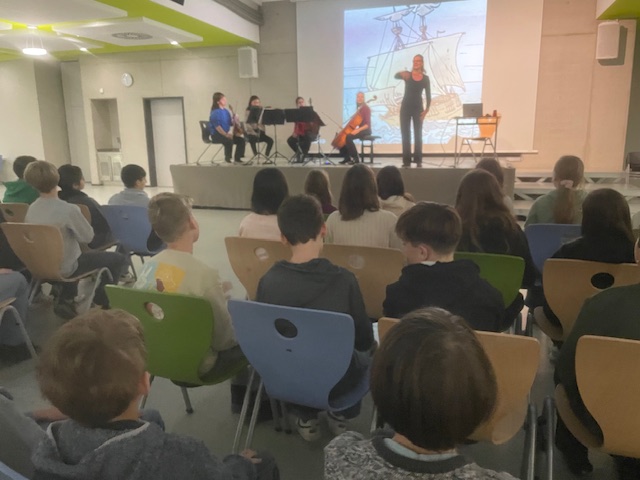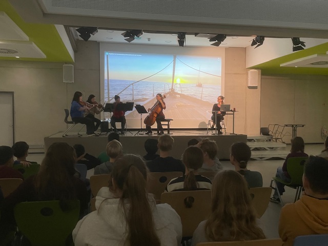 Das Streichquartett gab einen interessanten Einblick in die Welt der klassischen Musik: Die Musikerinnen und Musiker erzählten mit und von ihren Instrumenten und zeigten, wie man mit Musik Stimmungen wie Wind, Wellen oder Abenteuerlust erzeugen konnte.