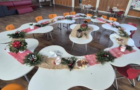 Unser diesjähriges Wintercafé bot erneut einen wunderbaren Rahmen, um miteinander ins Gespräch zu kommen und die vorweihnachtliche Stimmung zu genießen. Bei warmen Getränken und liebevoll selbstgebackenen Plätzchen konnten Eltern, Lehrkräfte und die Schulleitung in aller Ruhe beisammensitzen.