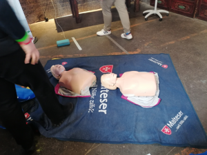 – Leben retten: An Simulationspuppen wurde die Reanimation geübt. Dabei zeigte sich schnell, wie körperlich anspruchsvoll eine Herzdruckmassage ist.